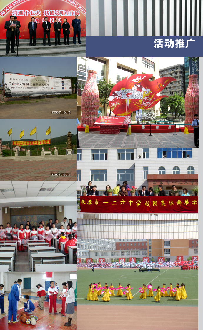 文化活动推广 活动推广就是整合自身优势资源,借用社会关注焦点,通过精心策划的活动或事件,吸引媒体的报道与广大公众的参与,加强学校文化品牌体验,提升学校文化品牌形象,形成学校文化品牌忠诚的推广营销活动。它不但是集广告、促销、公关、推广等一体的营销手段,也是建立在学校文化品牌推广营销、关系推广营销、数据推广营销的基础之上的全新推广营销模式。其功能就是一项高强度、高密度的综合性整合推广营销行为;在捐赠、校庆、交流、演讲、赛事等活动中进行事件的消息报道、新闻的综合描写、线下的阅览手册、线上的多媒体宣传,以及特定"公众"的现场参与等,以整体推广营销力达成目标的实现。